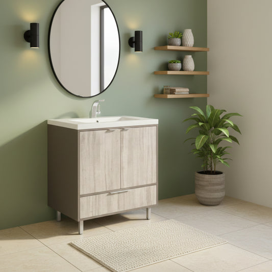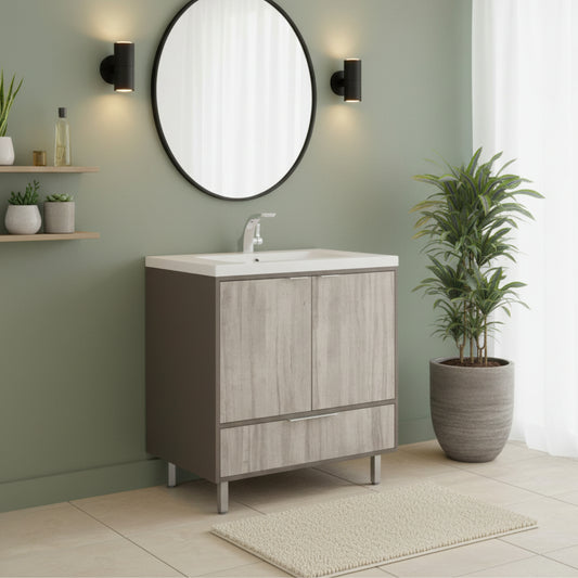 London 30" Single Sink Free Standing Cultured Marble Top Bathroom Vanity - Gray