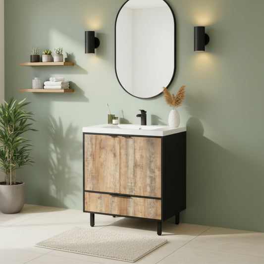 London 30" Single Sink Free Standing Cultured Marble Top Bathroom Vanity - Whiskey