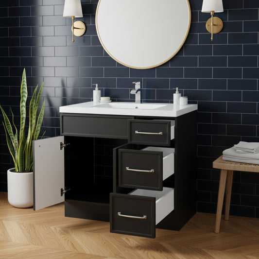 Manhattan 30" Single Sink Free Standing Cultured Marble Top Bathroom Vanity - Black