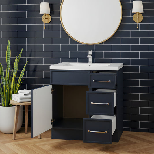 Manhattan 30" Single Sink Free Standing Cultured Marble Top Bathroom Vanity - Blue