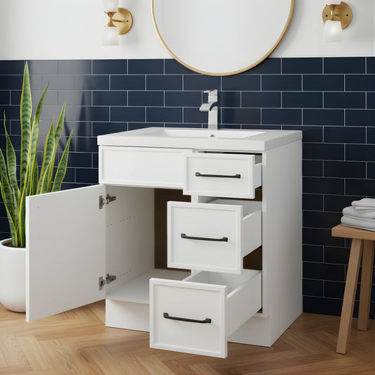 Manhattan 30" Single Sink Free Standing Cultured Marble Top Bathroom Vanity - White