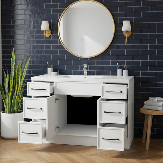 Manhattan 48" Single Sink Free Standing Cultured Marble Top Bathroom Vanity - White