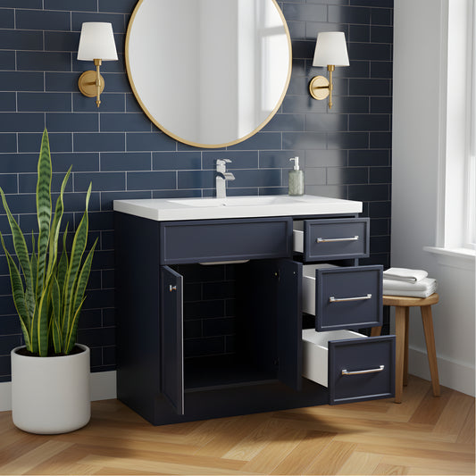 Manhattan 36" Single Sink Free Standing Cultured Marble Top Bathroom Vanity - Blue