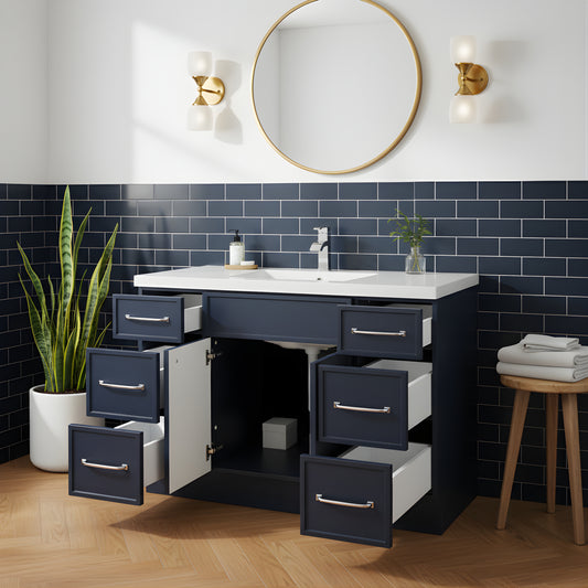 Manhattan 48" Single Sink Free Standing Cultured Marble Top Bathroom Vanity - Blue