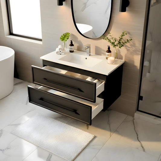 Milano 36" Single Sink Wall Mount Cultured Marble Top Shaker Vanity - Black