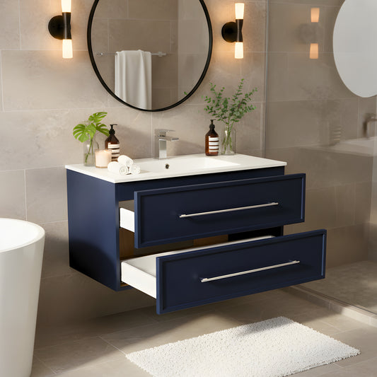 Milano 36" Single Sink Wall Mount Cultured Marble Top Shaker Vanity - Blue