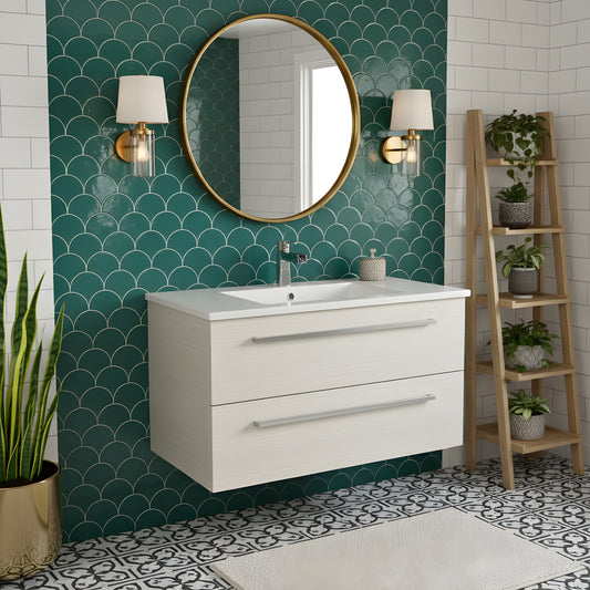 Silhouette 36" Single Sink Wall Mount Cultured Marble Top Bathroom Vanity - Aria