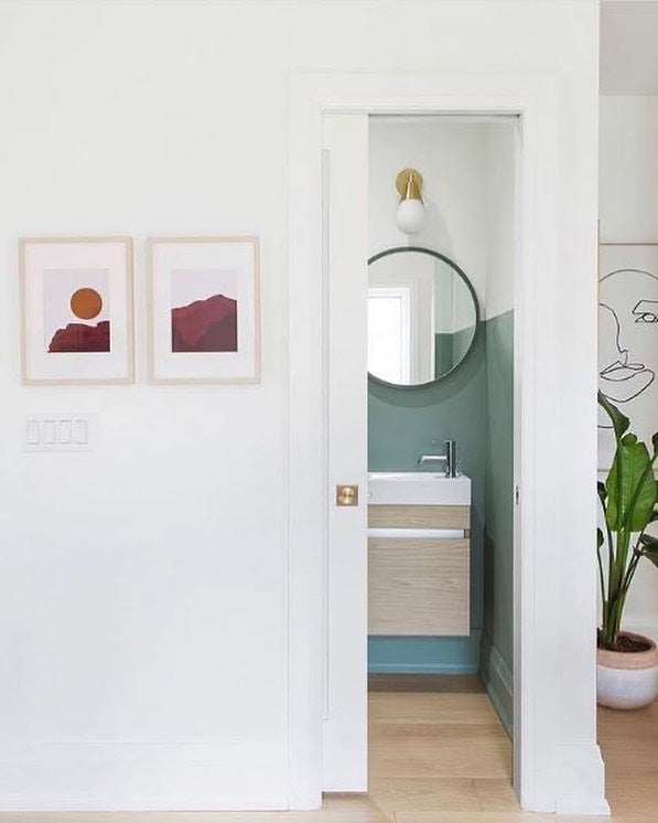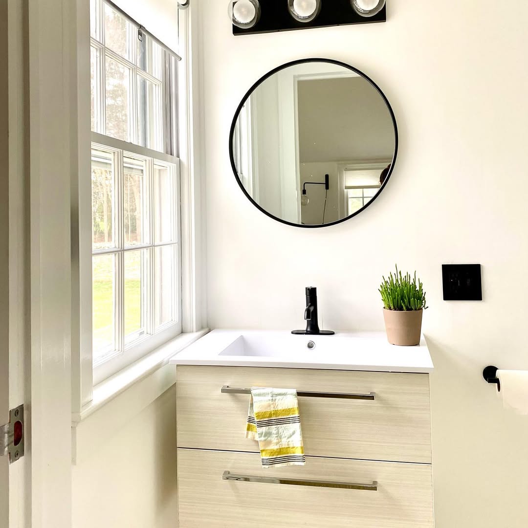 The Silhouette 30" Vanity styled to perfection in an airy, modern powder room! Perfect for small spaces.