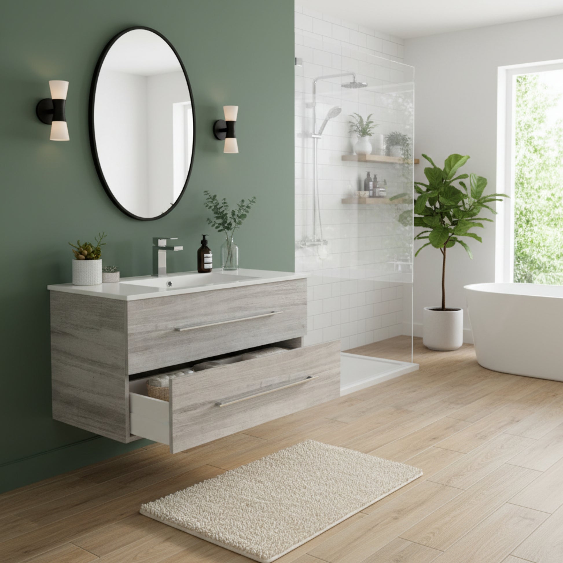 - SOFT-CLOSE DRAWER SYSTEM: This modern vanity features a smooth-operating soft-close drawer that prevents slamming, extends cabinet life, and provides quiet, reliable storage for daily essentials