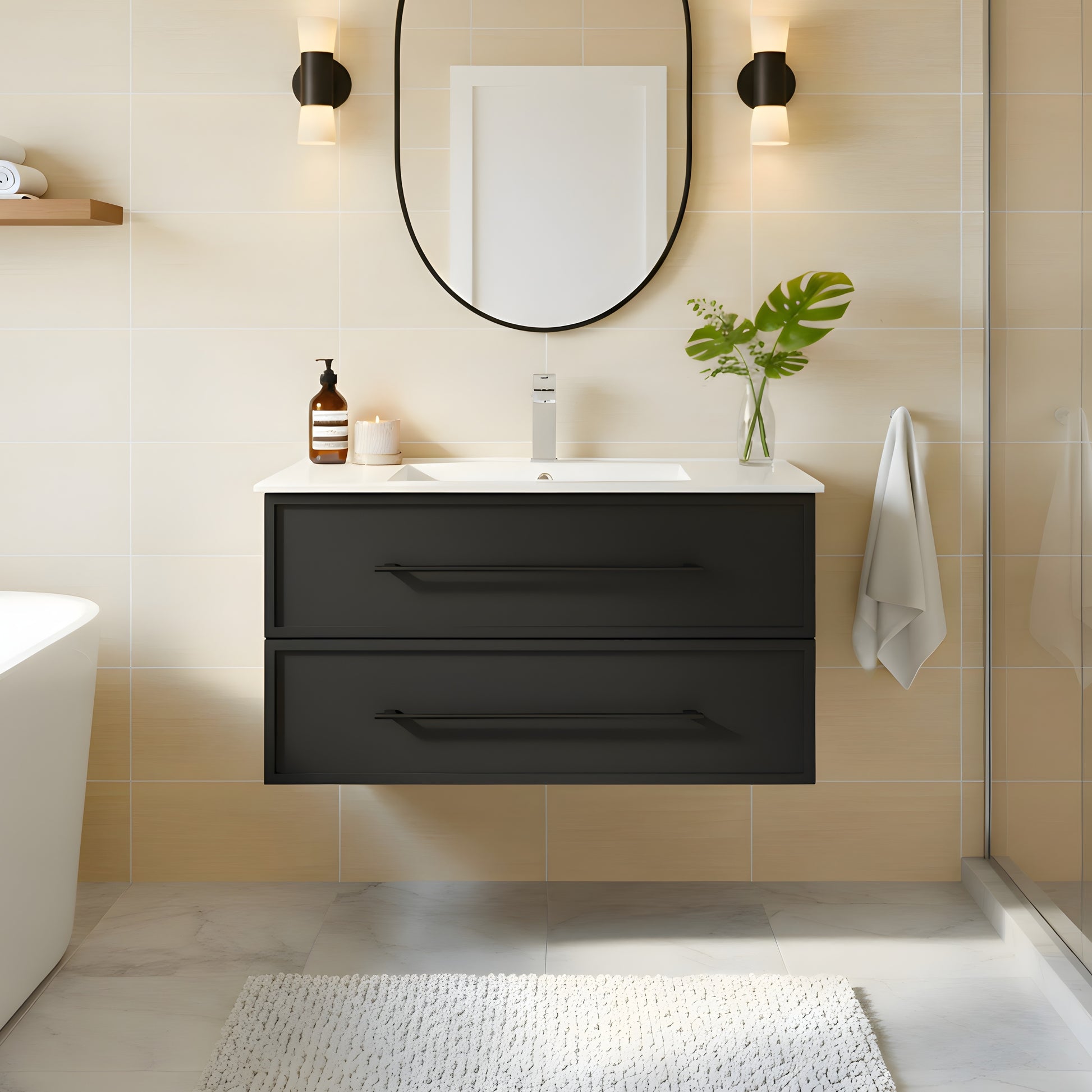 • SOFT-CLOSE DRAWER SYSTEM: This modern vanity features a smooth-operating soft-close drawer that prevents slamming, extends cabinet life, and provides quiet, reliable storage for daily essentials