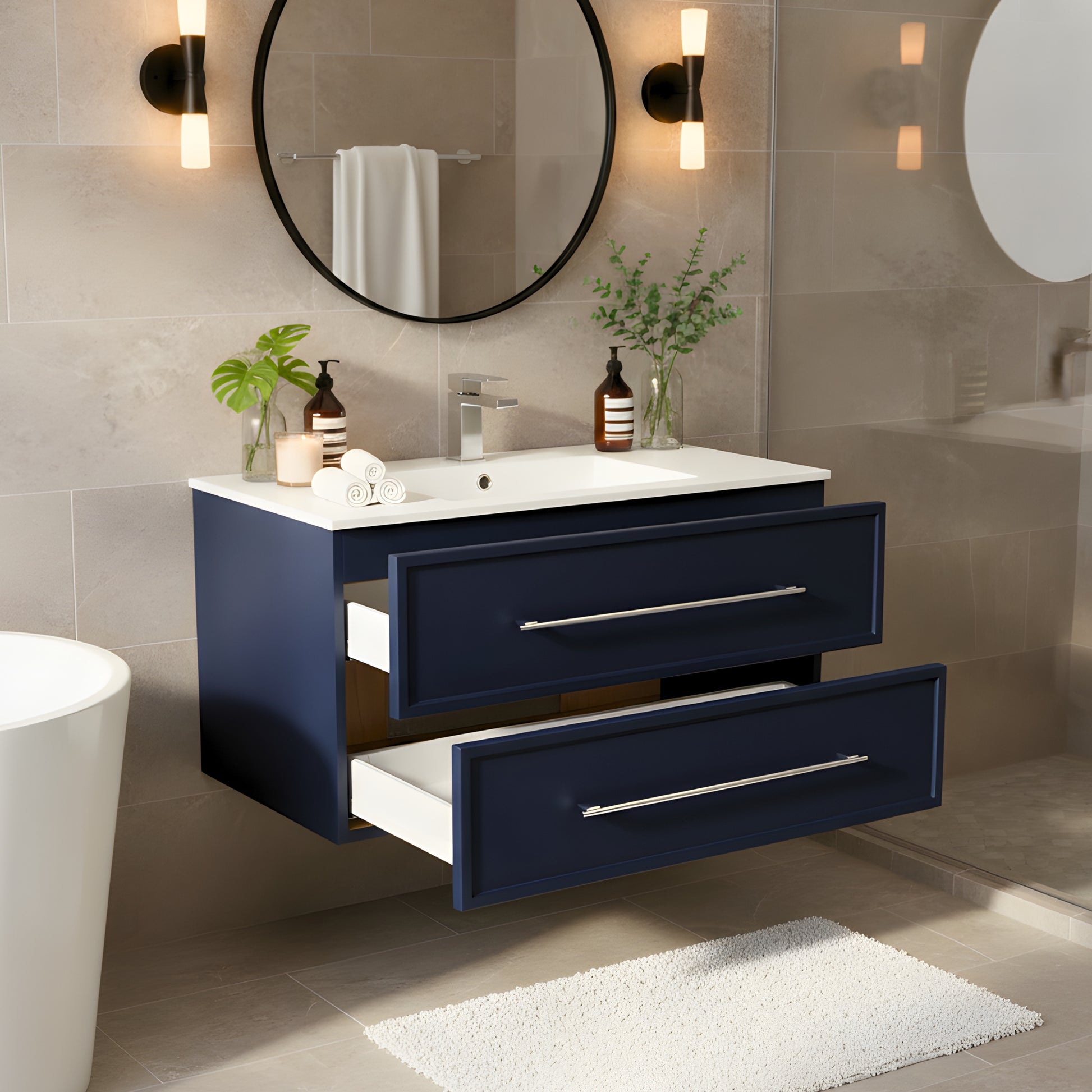 - SOFT-CLOSE DRAWER SYSTEM: This modern vanity features a smooth-operating soft-close drawer that prevents slamming, extends cabinet life, and provides quiet, reliable storage for daily essentials