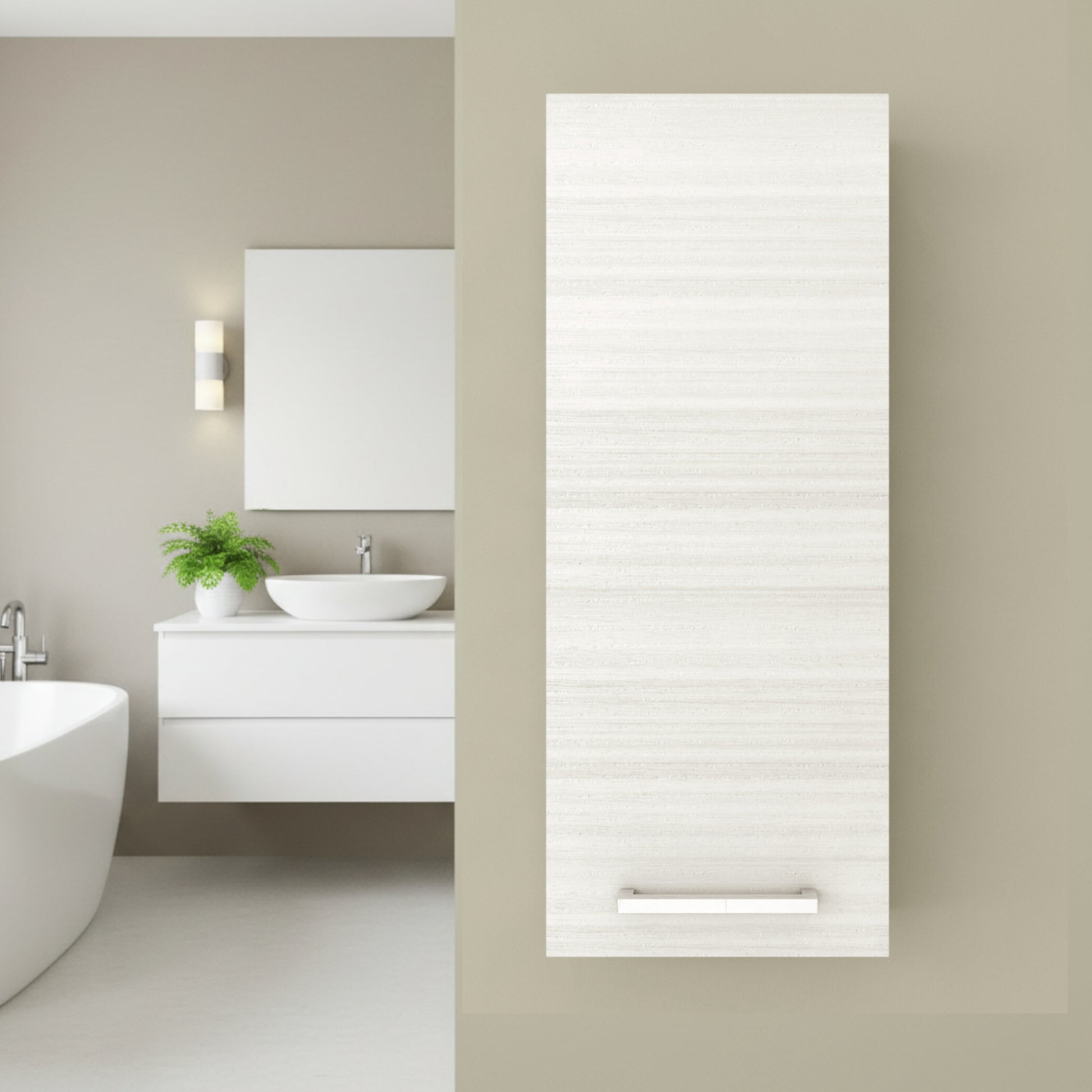 - MODERN WALL-MOUNTED DESIGN: The sleek, space-saving wall-mounted design enhances modern bathroom interiors with a clean, minimalist look while keeping floors clutter-free