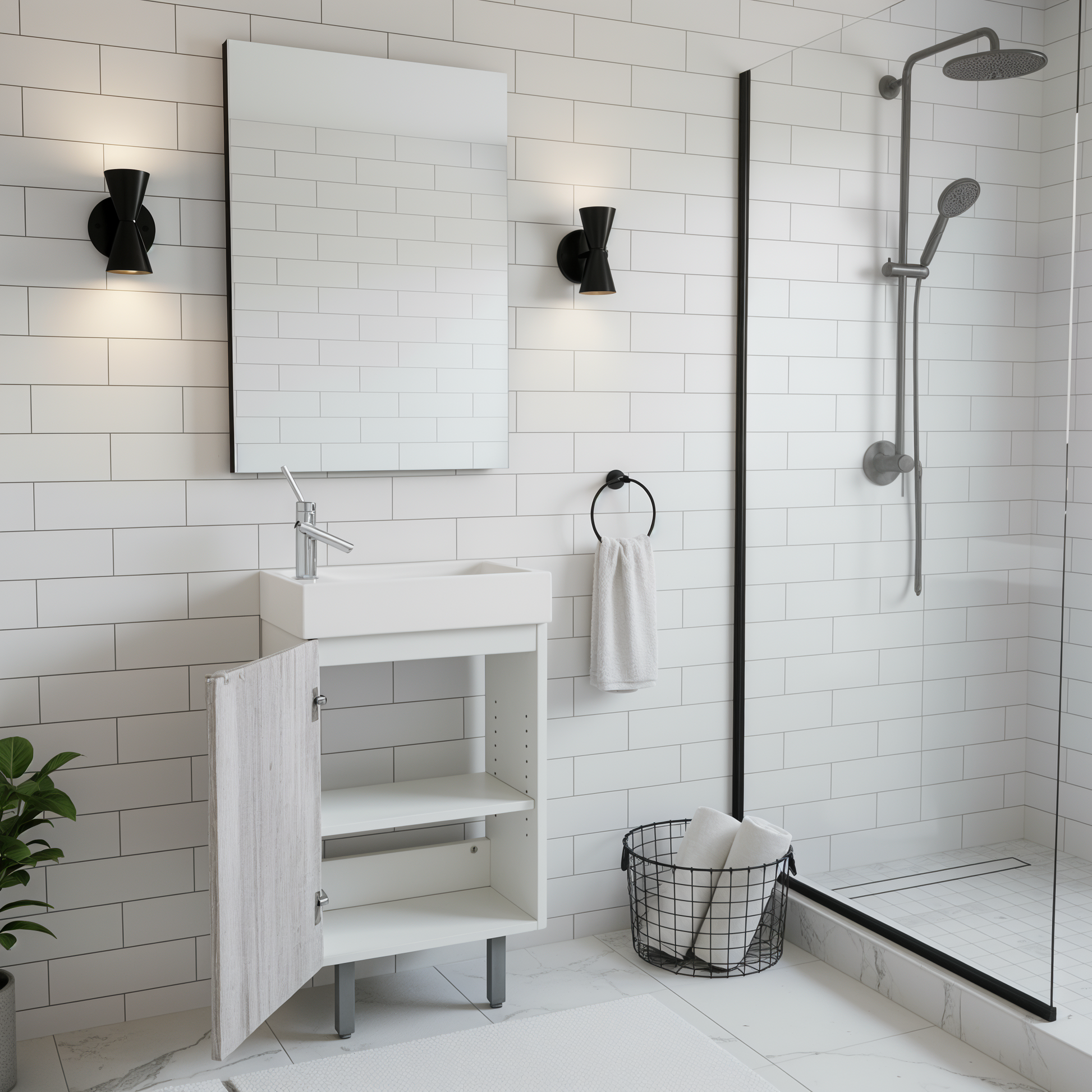 Upgrade your small bathroom with our sleek and space-saving 18-inch bathroom vanity with sink, designed to bring modern elegance and practical function to compact areas. Perfect for limited spaces, this vanity offers a stylish and efficient upgrade for any contemporary bathroom. Crafted from durable manufactured wood in a clean white finish, it enhances your décor with a bright and refined touch. The cultured marble countertop with an integrated integrated sink delivers a smooth, durable surface that’s easy to clean and built to last. Featuring a right-positioned rectangular sink, it maximizes usability without sacrificing design balance. Whether you’re remodeling or updating your space, this bathroom sink cabinet combines compact size, modern charm, and reliable quality — the ideal solution for a functional yet sophisticated bathroom transformation.