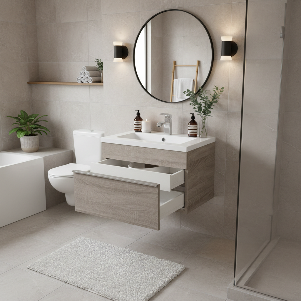 - MODERN FLOATING DESIGN: The sleek 24 inch vanity with sink wall-mounted design keeps the floor open and easy to clean, creating a contemporary aesthetic while saving space in standard bathrooms