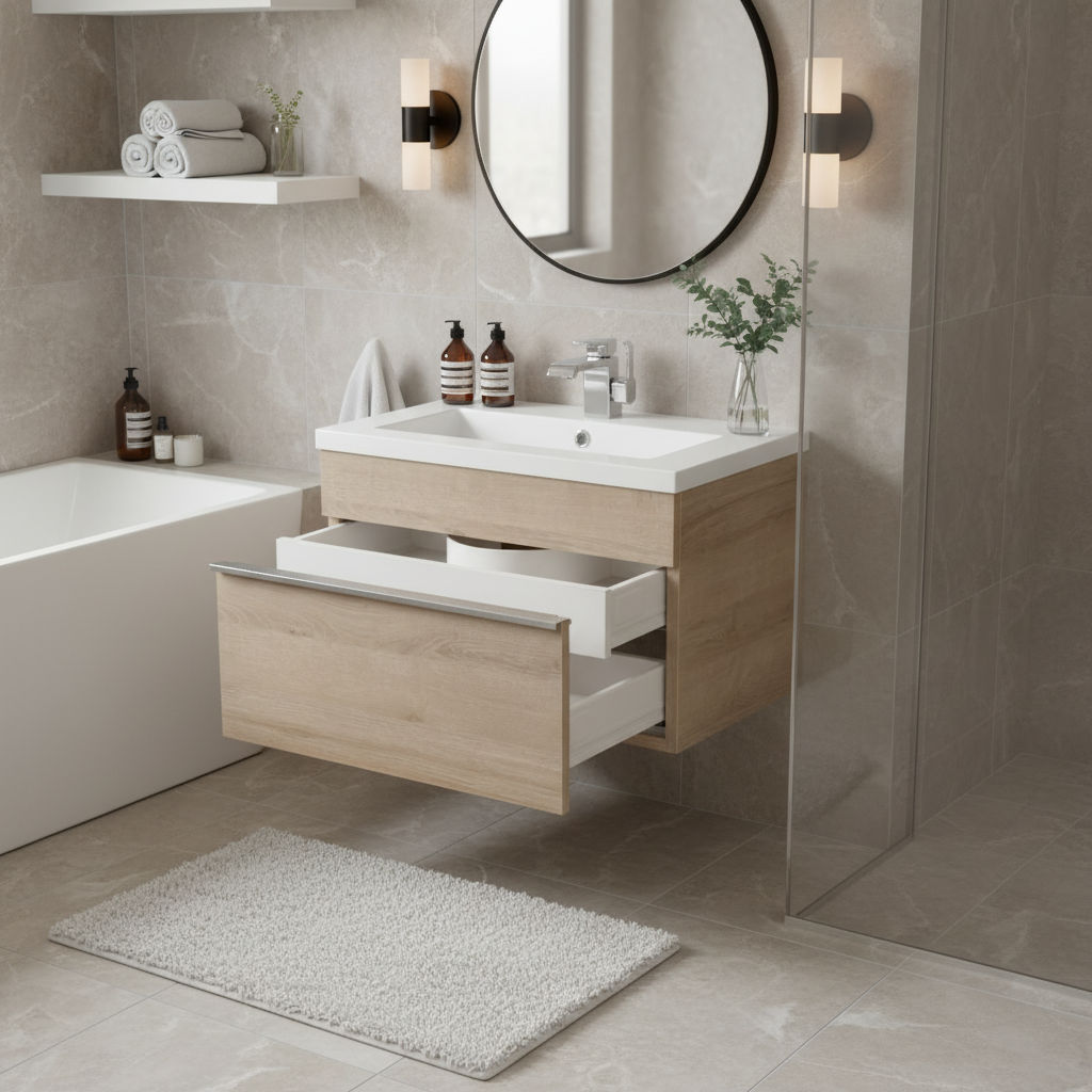 - MODERN FLOATING DESIGN: The sleek 24 inch vanity with sink wall-mounted design keeps the floor open and easy to clean, creating a contemporary aesthetic while saving space in standard bathrooms