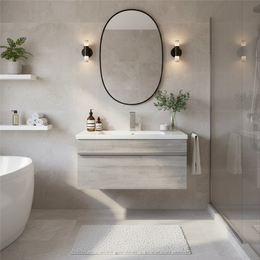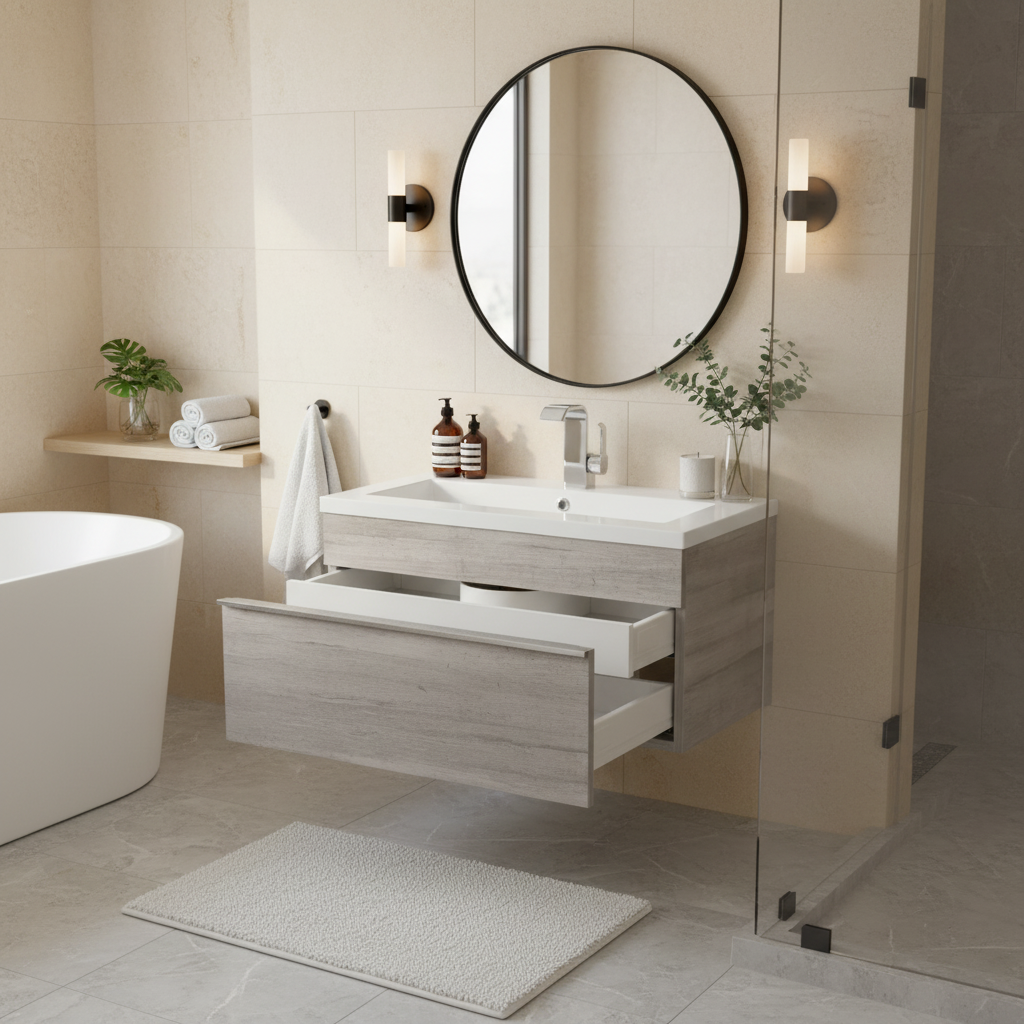 - MODERN FLOATING DESIGN: The sleek 30 inch vanity with sink wall-mounted design keeps the floor open and easy to clean, creating a contemporary aesthetic while saving space in standard bathrooms